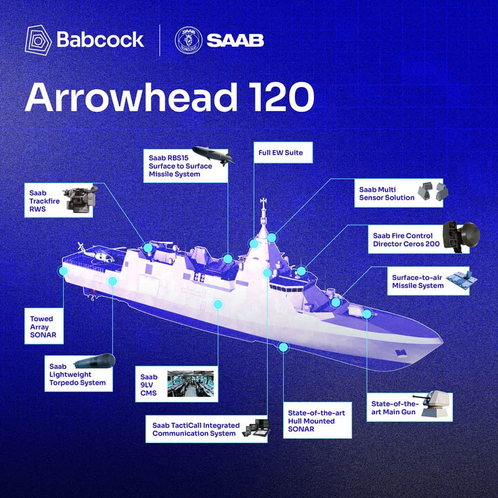 The Arrowhead 120 is an advanced multi mission frigate jointly developed by Babcock and Saab to meet the future operational needs of the Swedish Navy